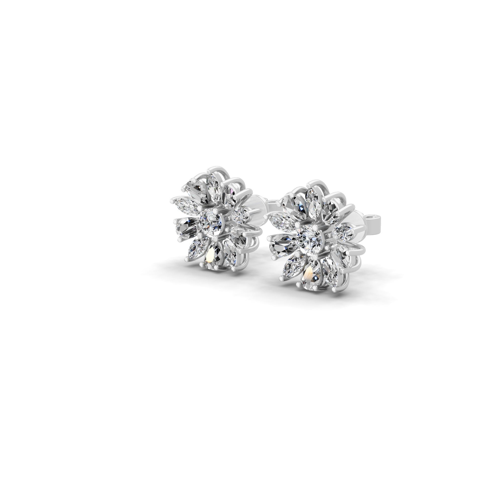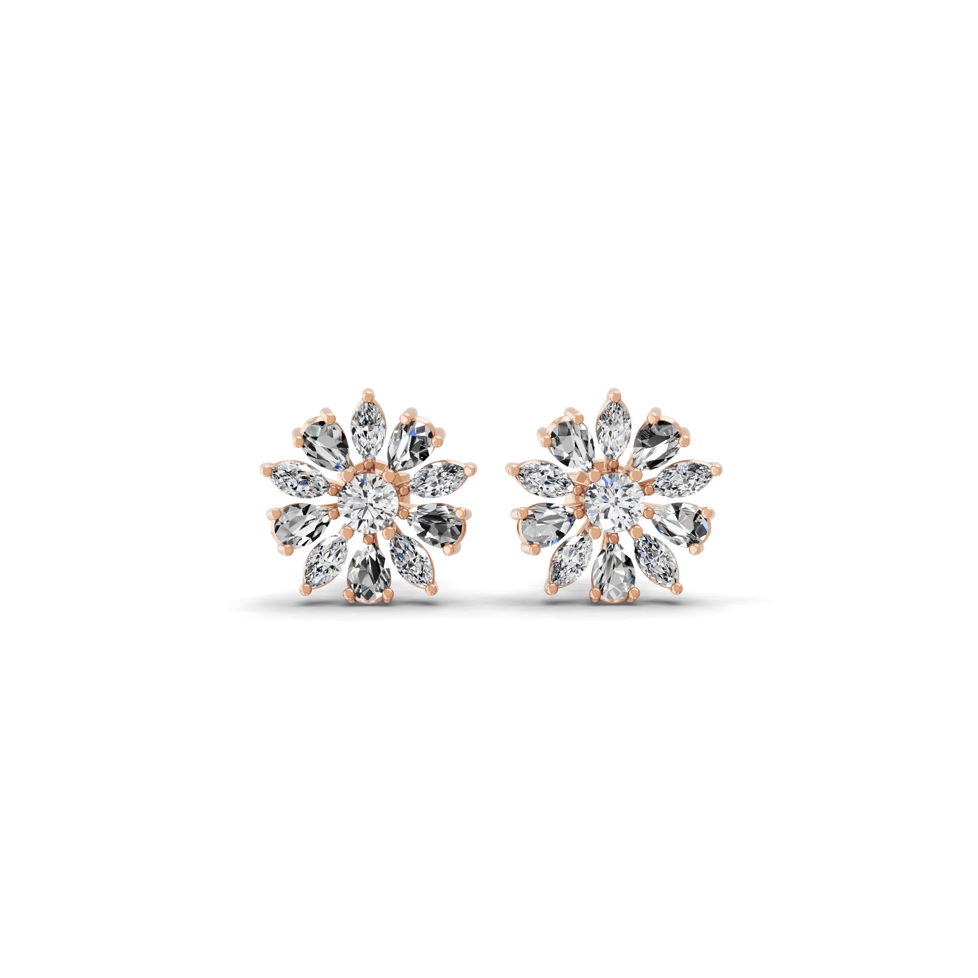 14K Fine Gold Bloomed Stud Earrings Lab Grown Diamond 2.32Ct
