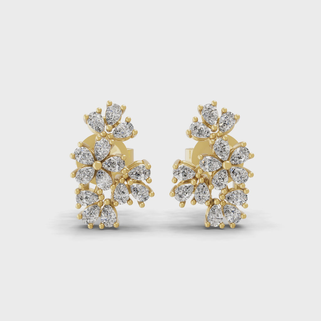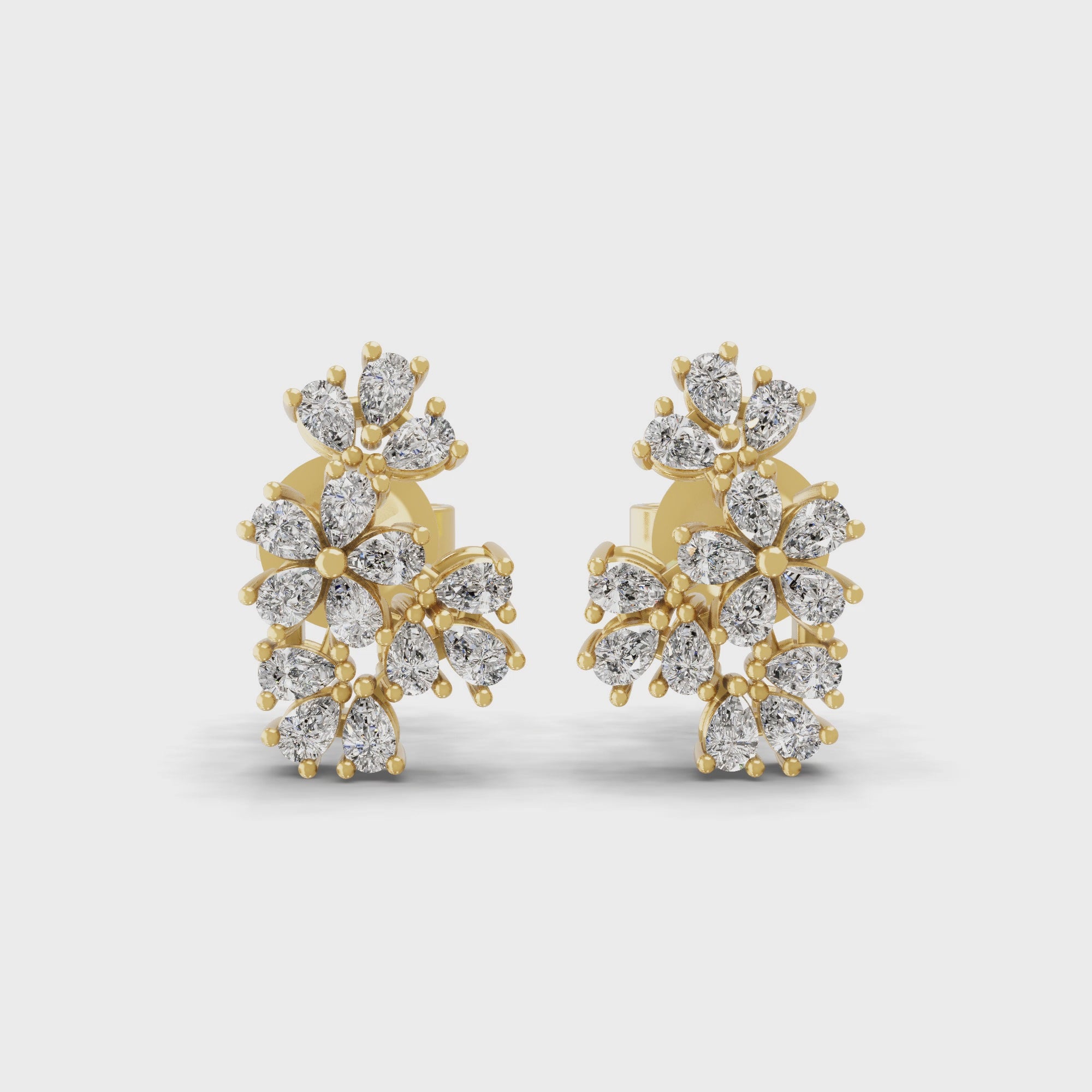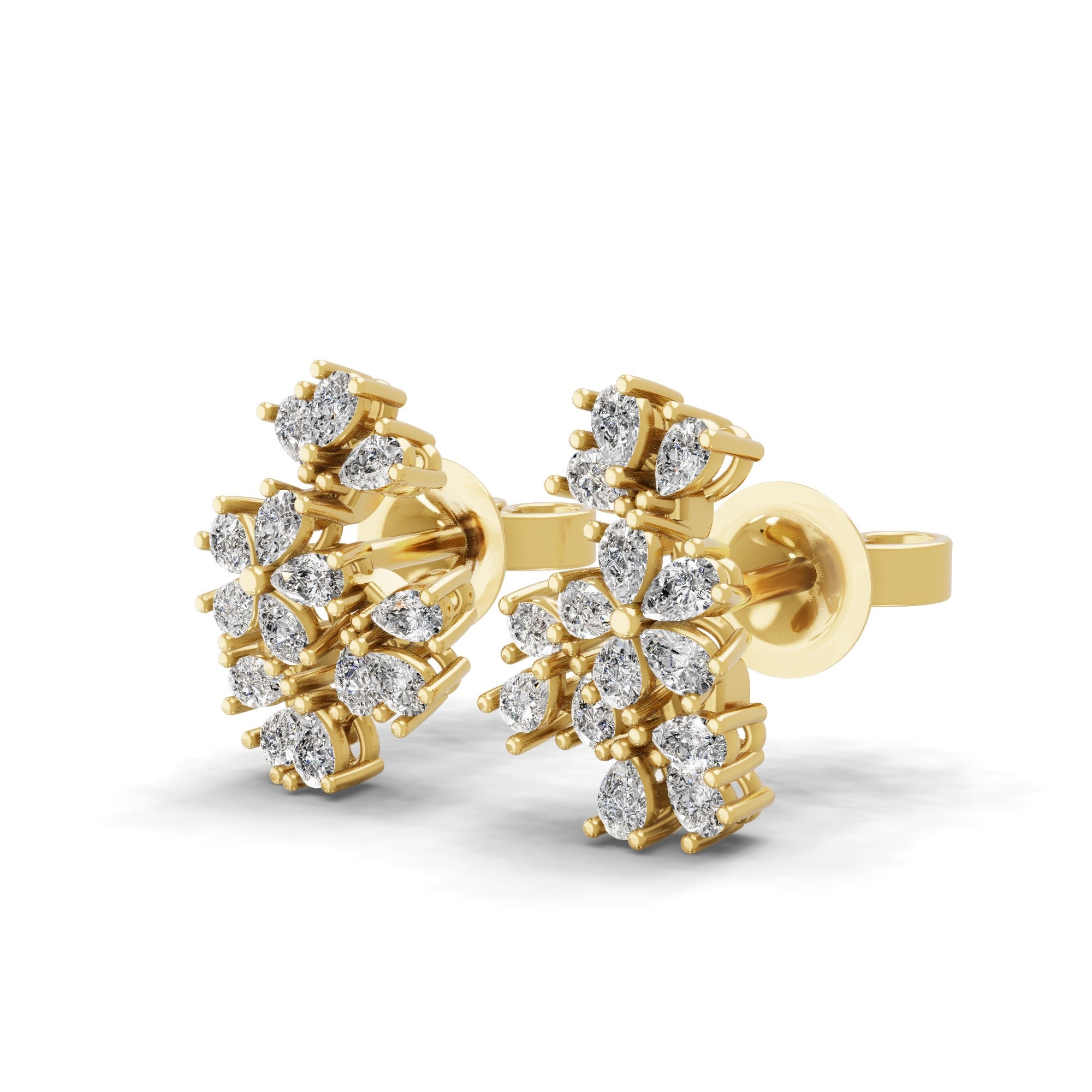 14K Fine Gold Cluster Stud Earrings Lab Grown Pear Diamond 0.84Ct