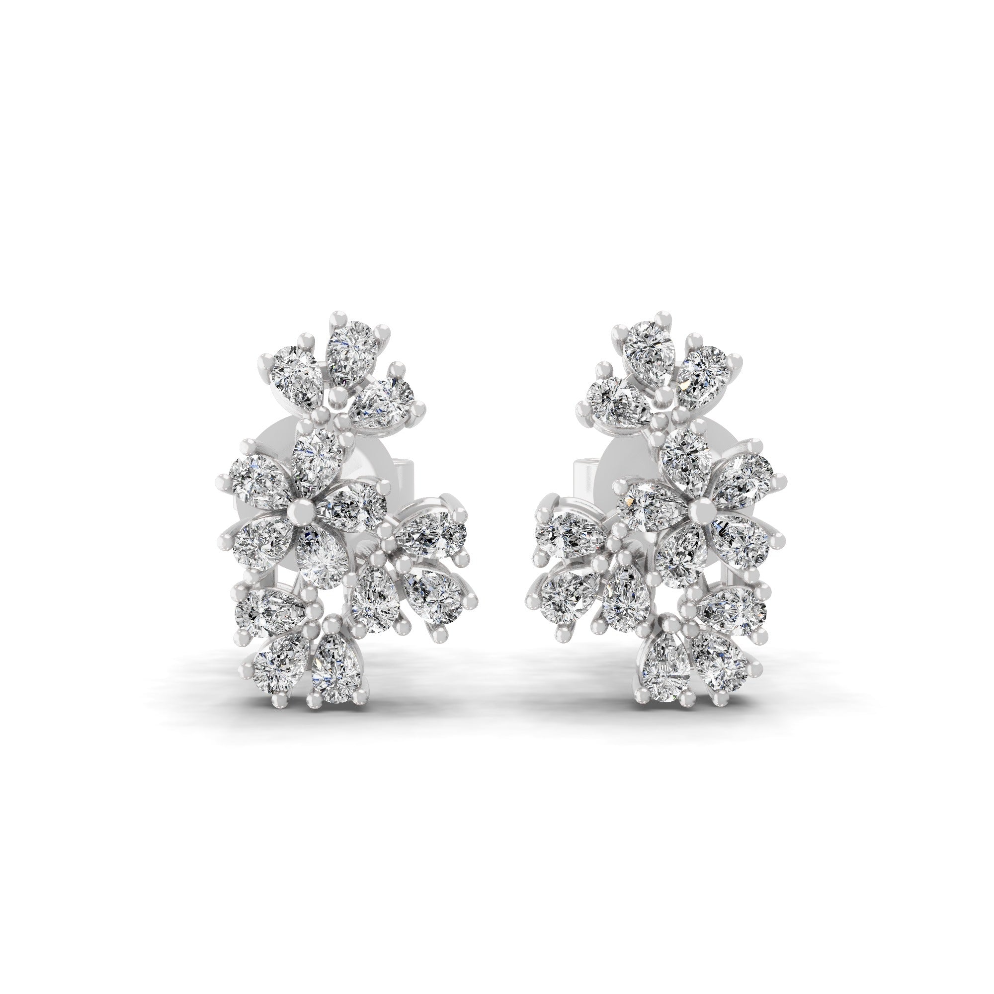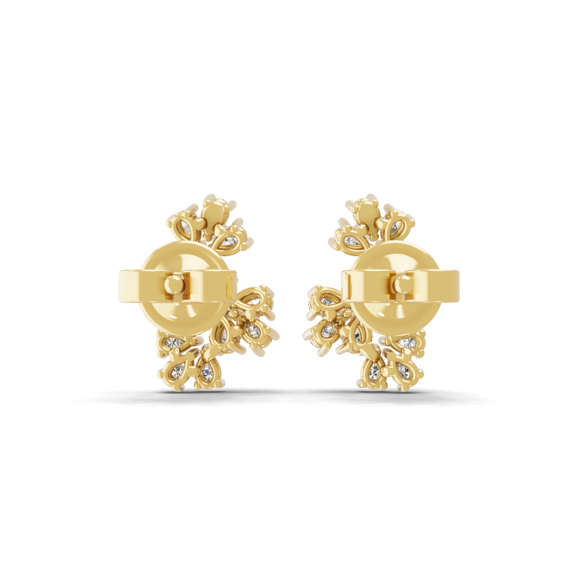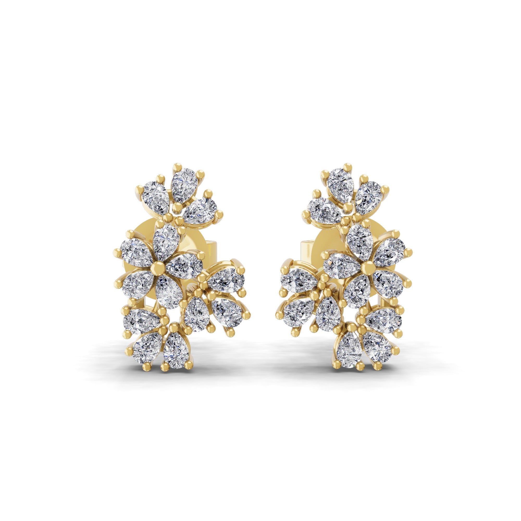 14K Fine Gold Cluster Stud Earrings Lab Grown Pear Diamond 0.84Ct