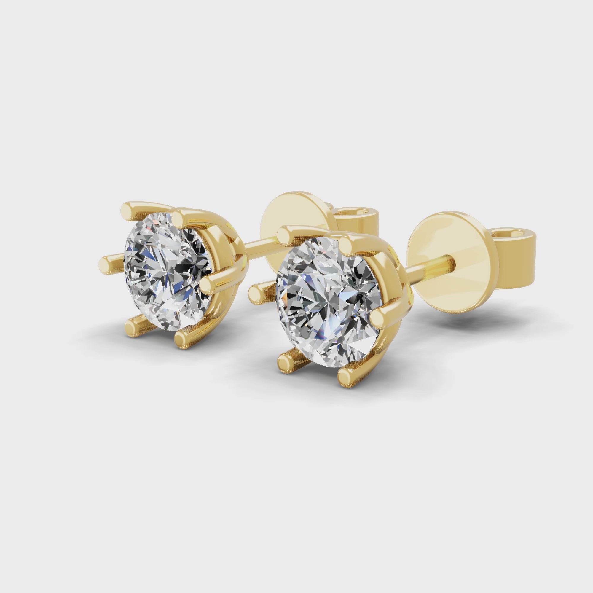 14K Fine Gold Solitaire Round Cut Lab Grown Diamond Stud Earrings 0.70Ct