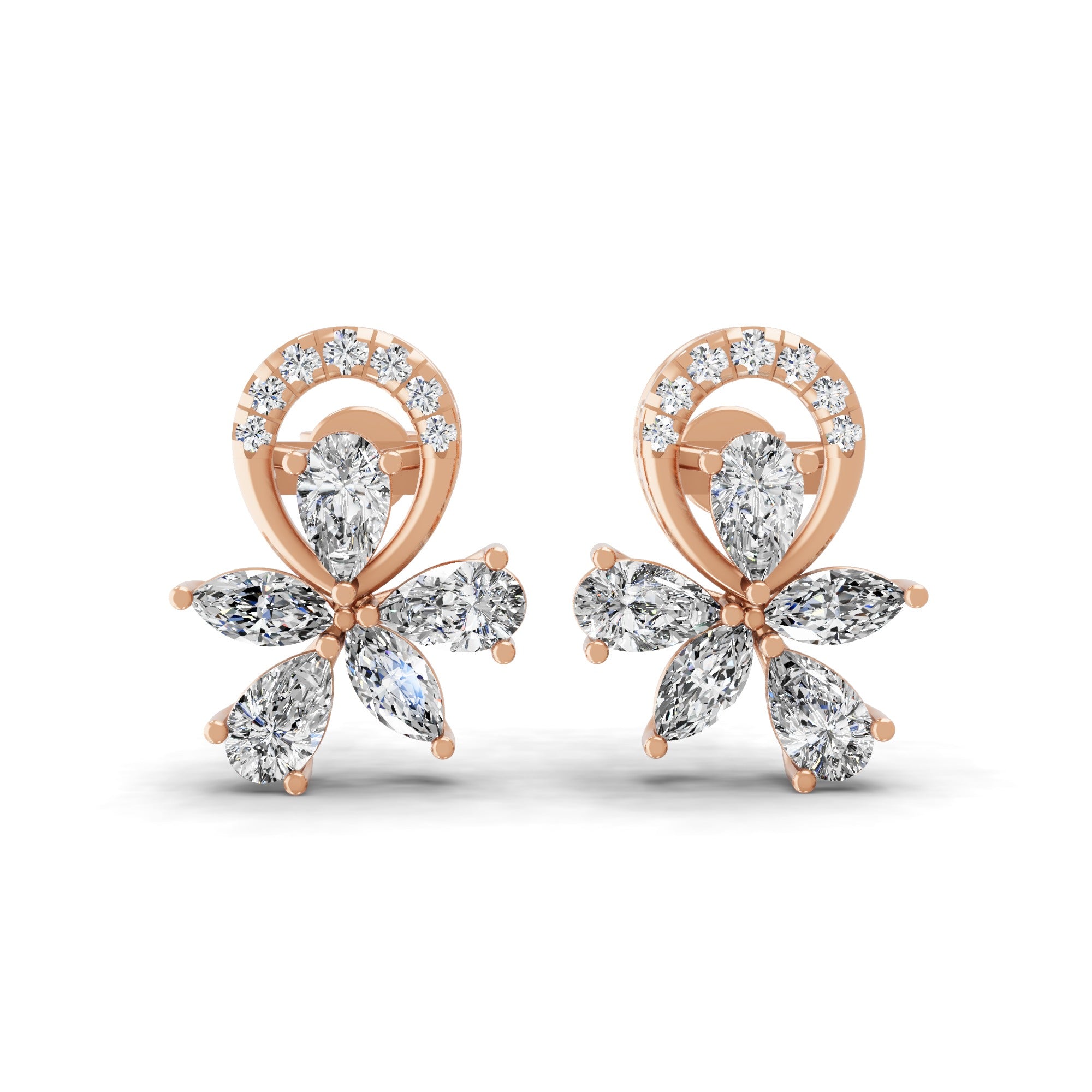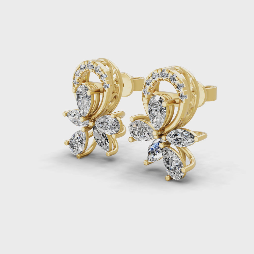 14K Fine Gold Cluster Stud Earrings Lab Grown Diamond 2.32Ct