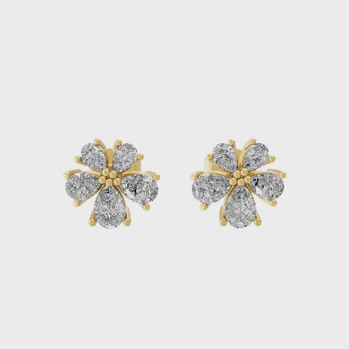 Lab Grown Diamond 0.66Ct Flower Cluster Stud Earrings 14K Fine Gold