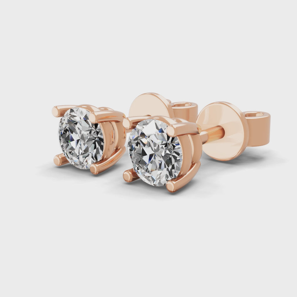 Lab Grown Round Diamond Solitaire 14K Fine Gold 0.50Ct Stud Earrings