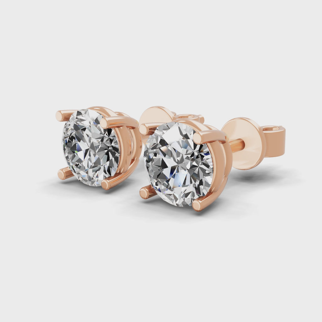 Lab Grown Round Diamond Solitaire 14K Fine Gold 1.50Ct Stud Earrings
