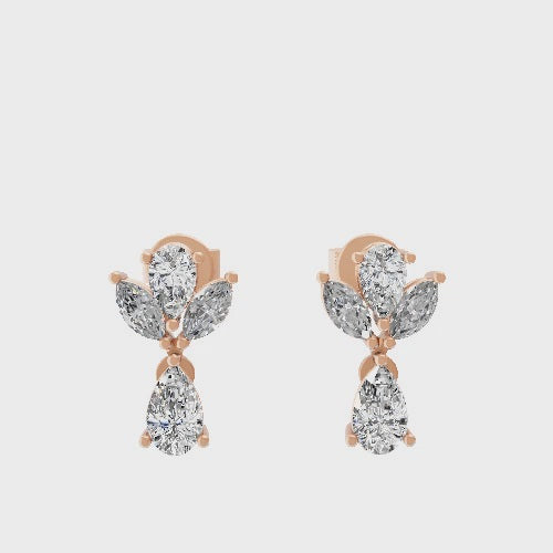 Marquise Cut Cluster Studded Drop Earrings Lab Grown Diamond 1.23Ct 14K Gold