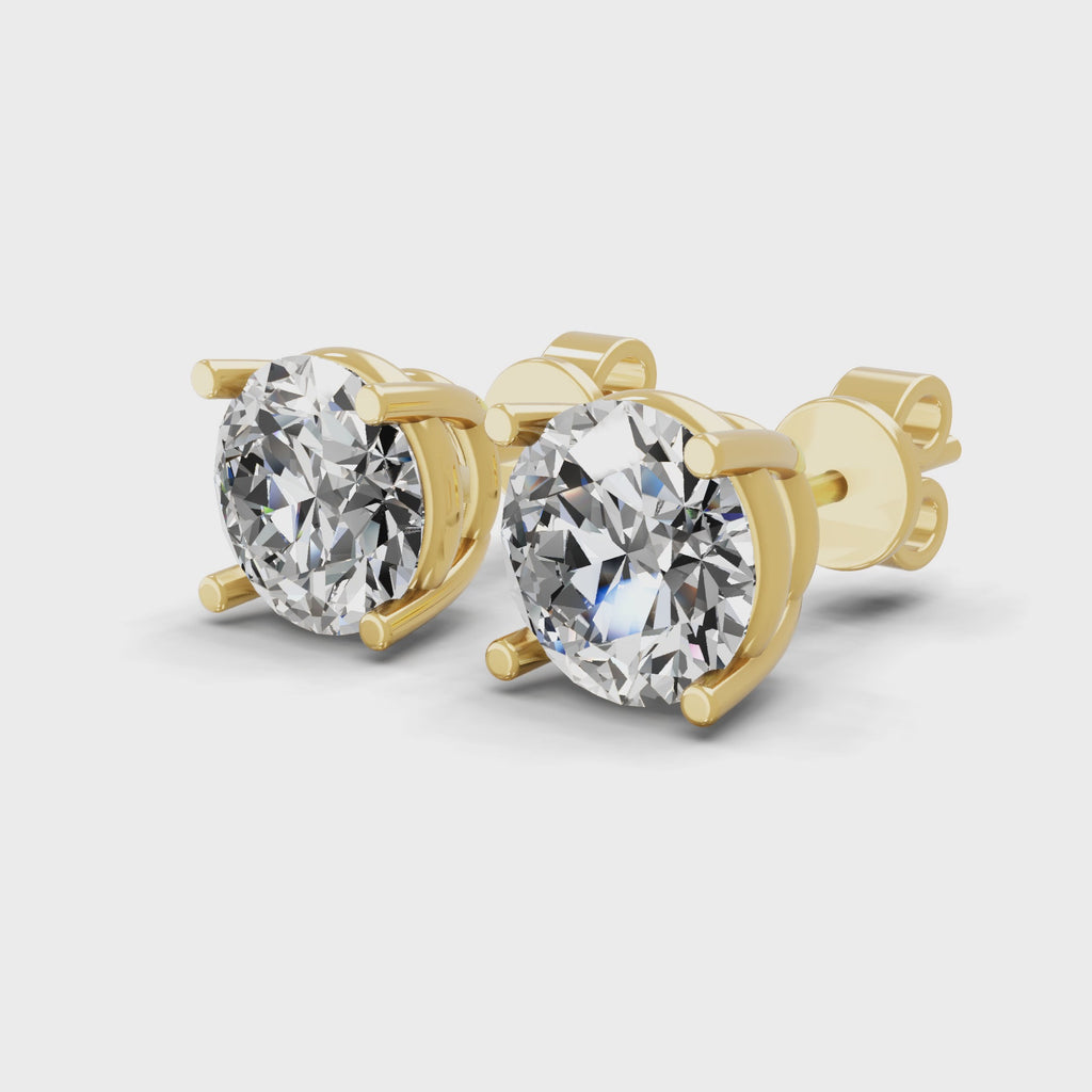 Solitaire Round Lab Grown Diamond 14K Fine Gold Stud Earrings 1.84Ct
