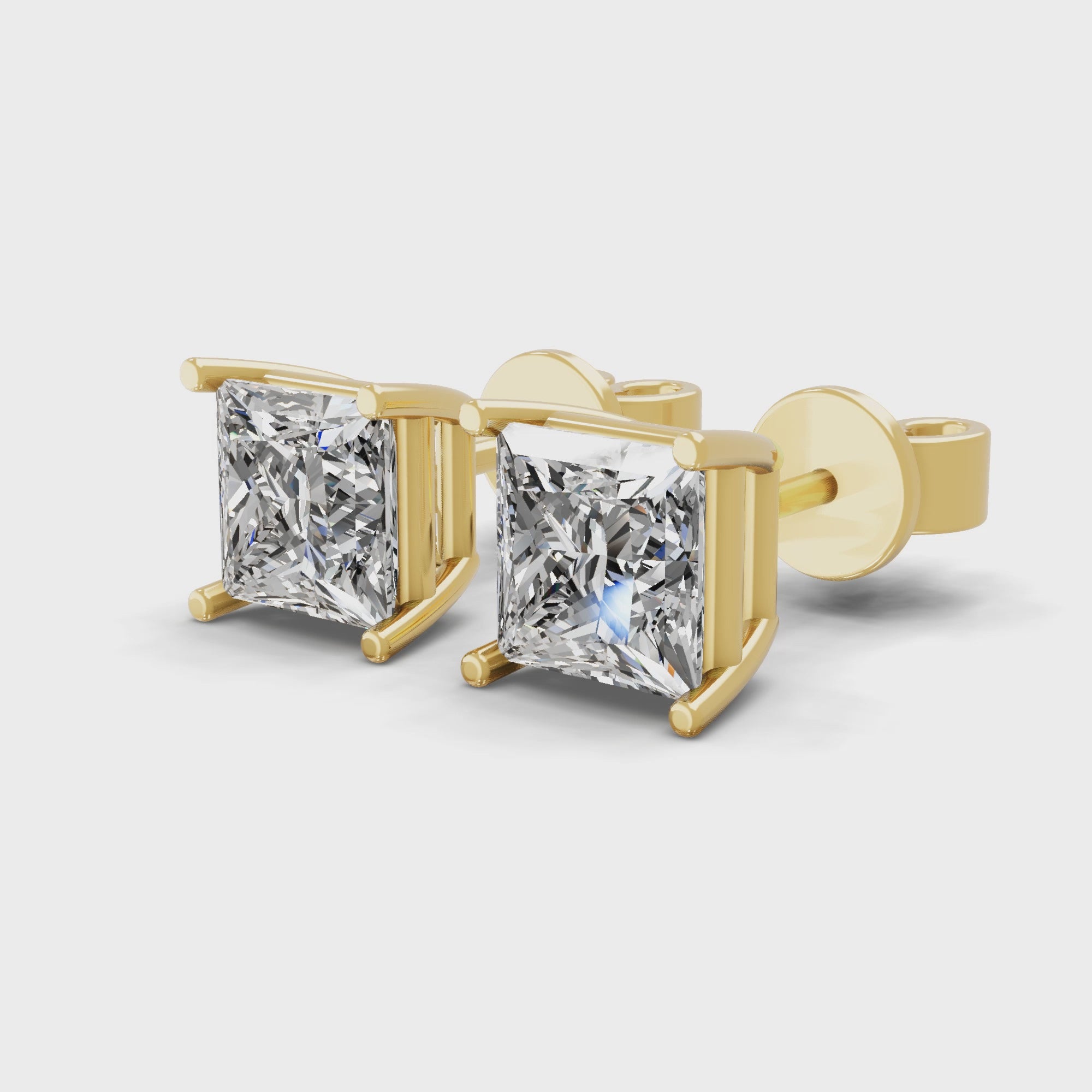 Square Cut 1.00Ct Solitaire Stud Earrings Lab Grown Diamond 14K Fine Gold