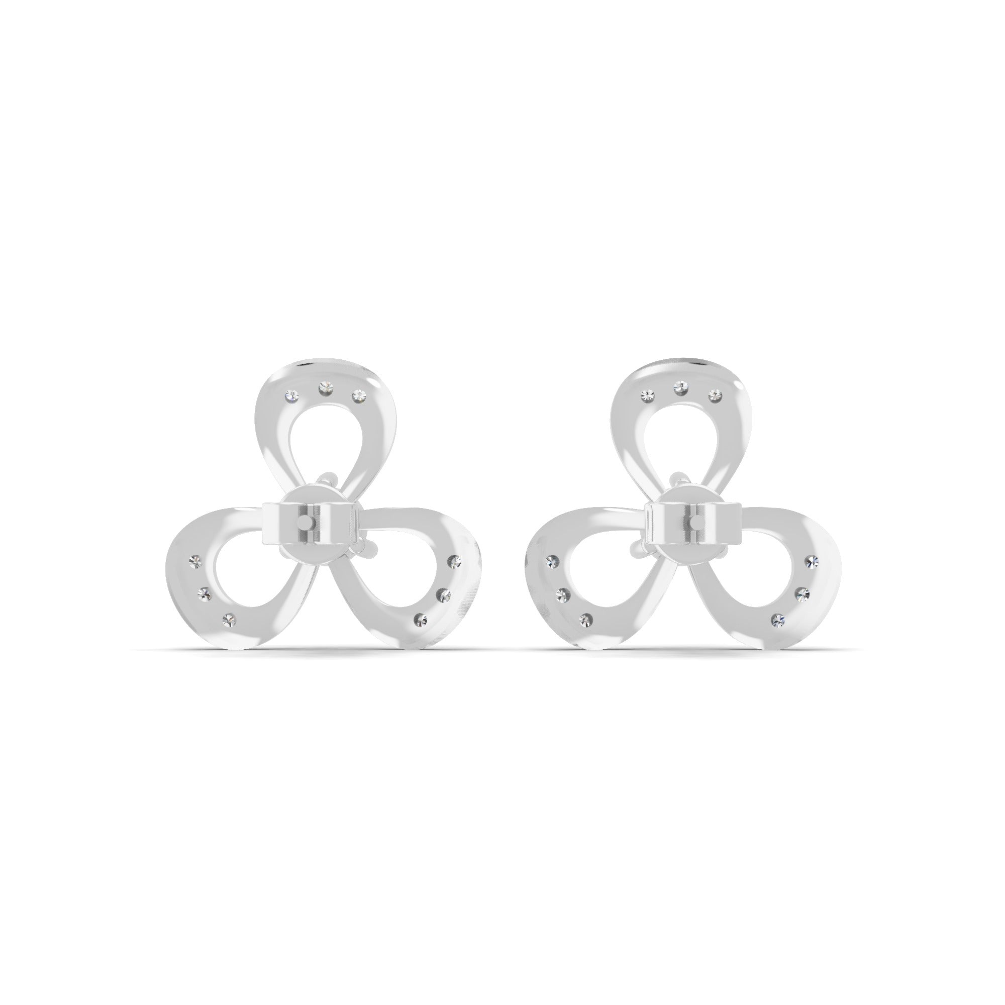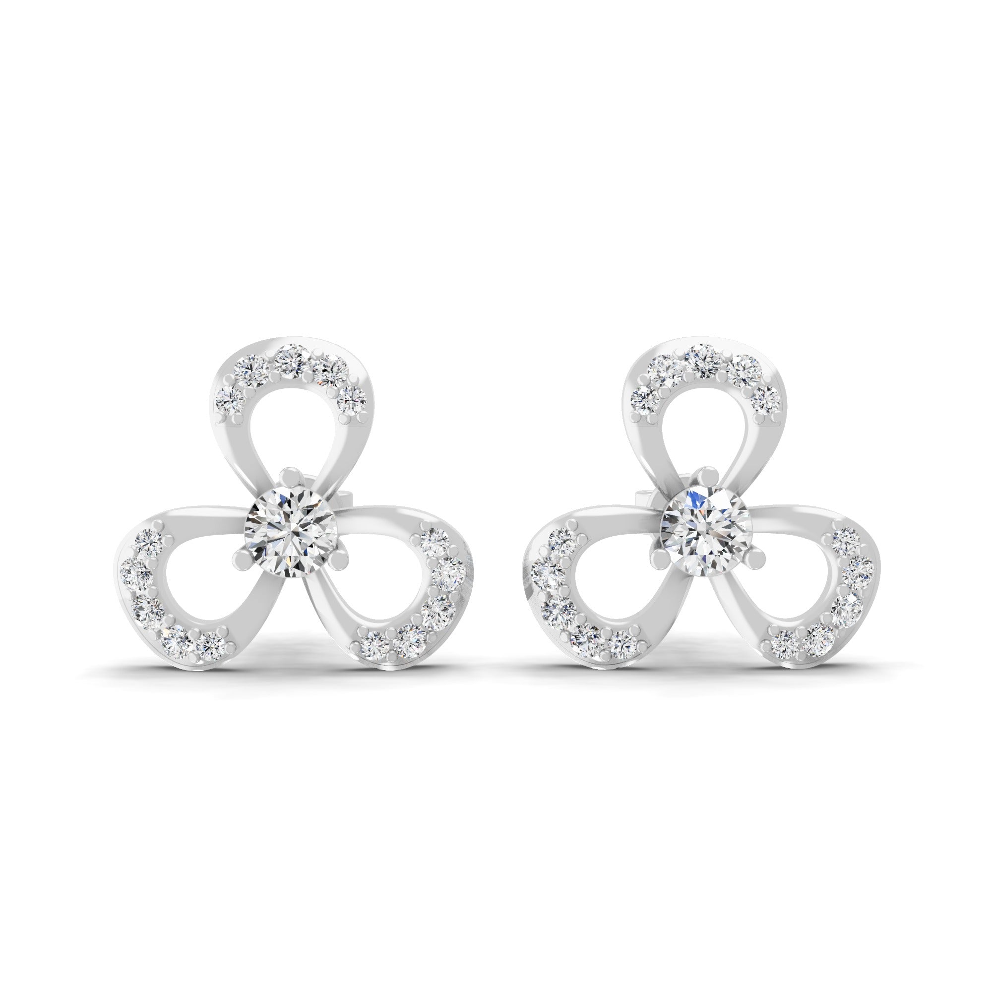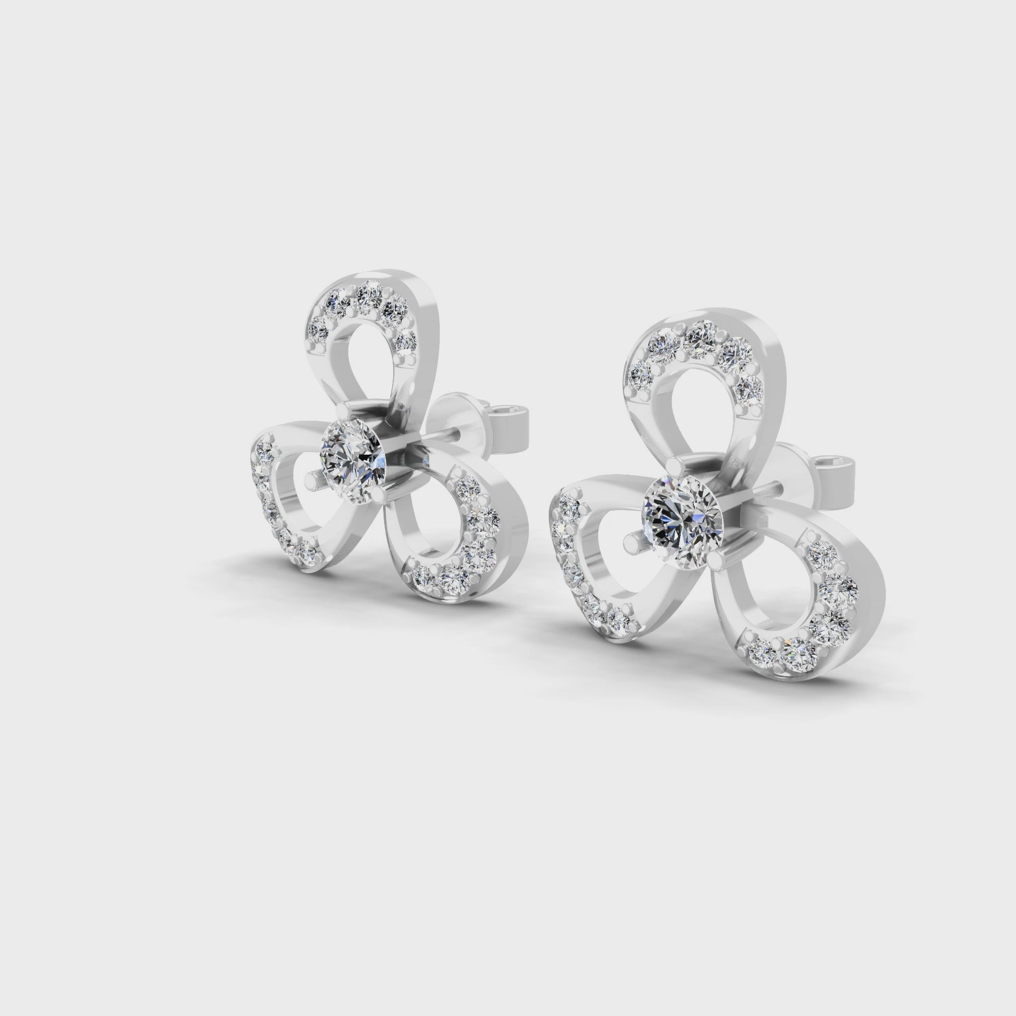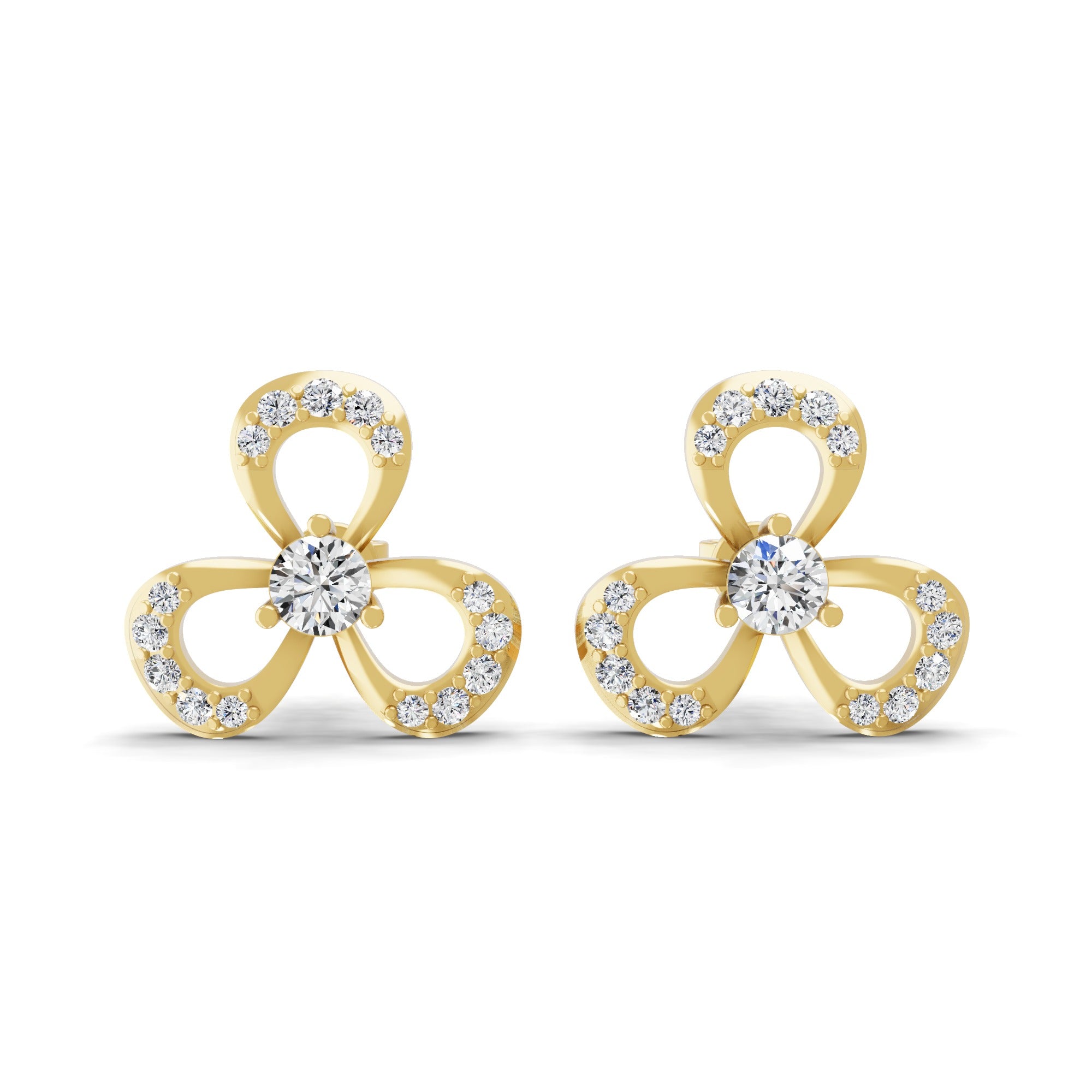 Three Clover Leaf Stud Earrings 14K Fine Gold 0.99Ct Lab Grown Diamond