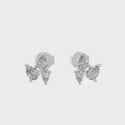 Trio of Pear Cut Lab Grown Diamond 0.39Ct Stud Earrings 14K Fine Gold