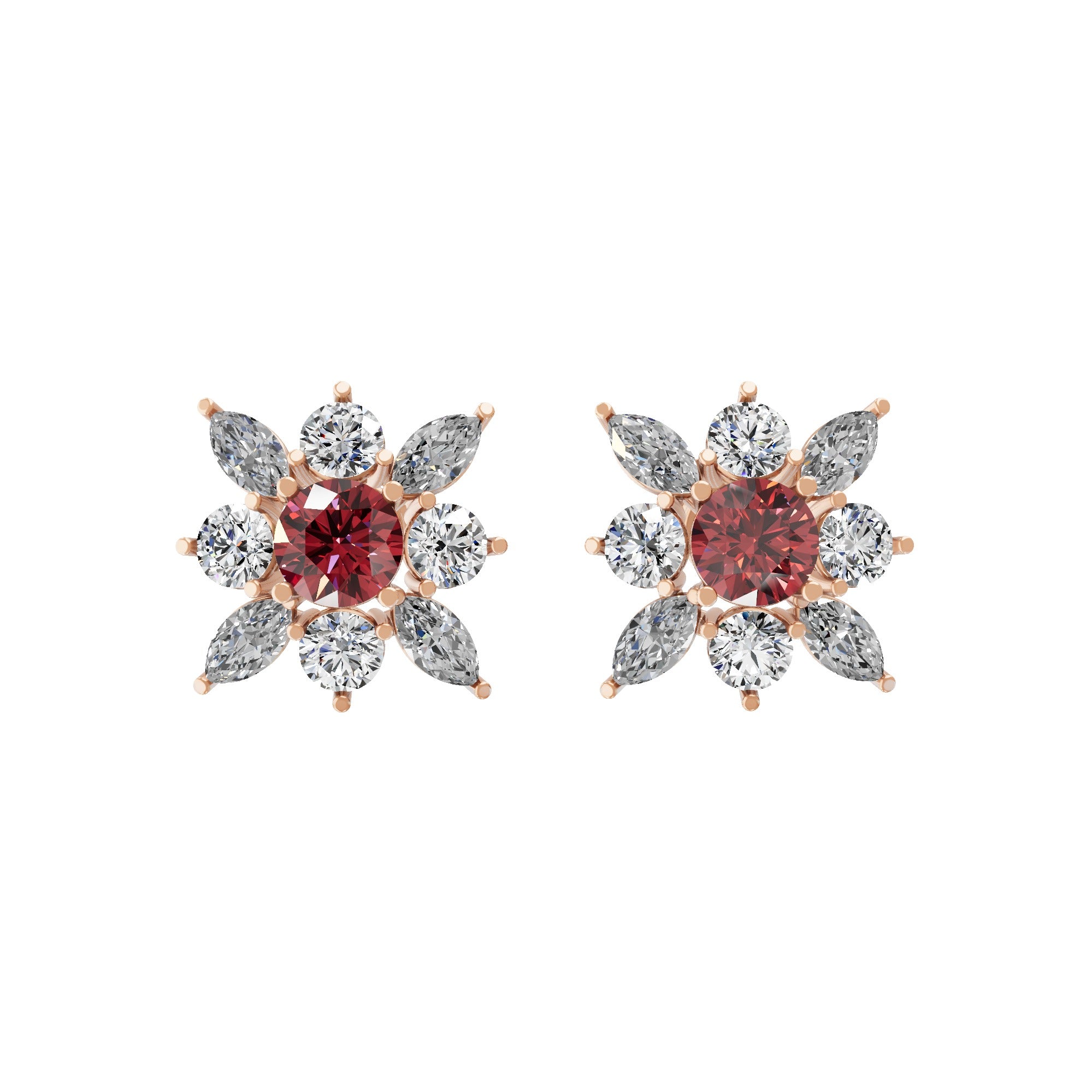 Round Ruby Marquise Cut Lab Grown Diamond 5.05Ct Stud Earrings 14K Fine Gold