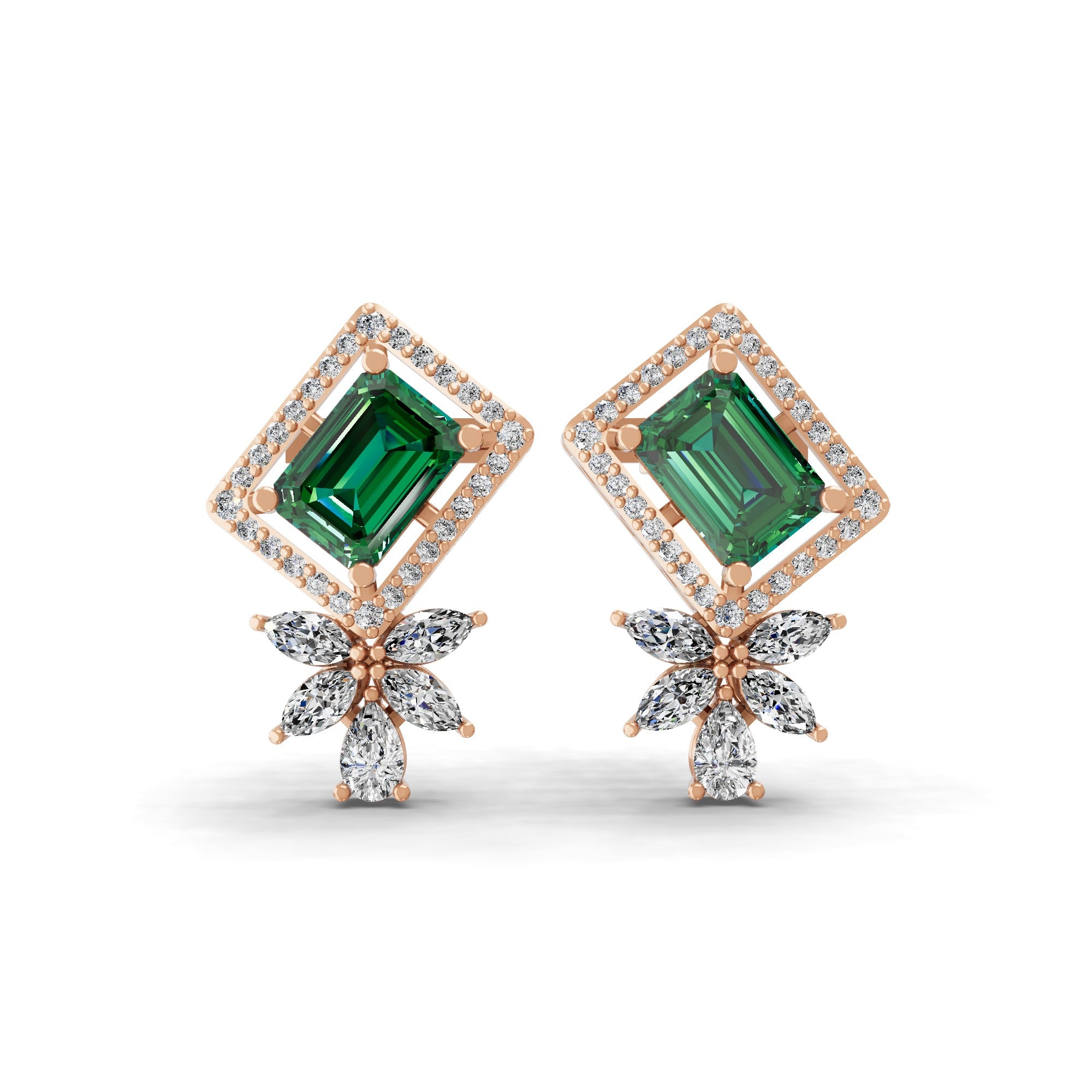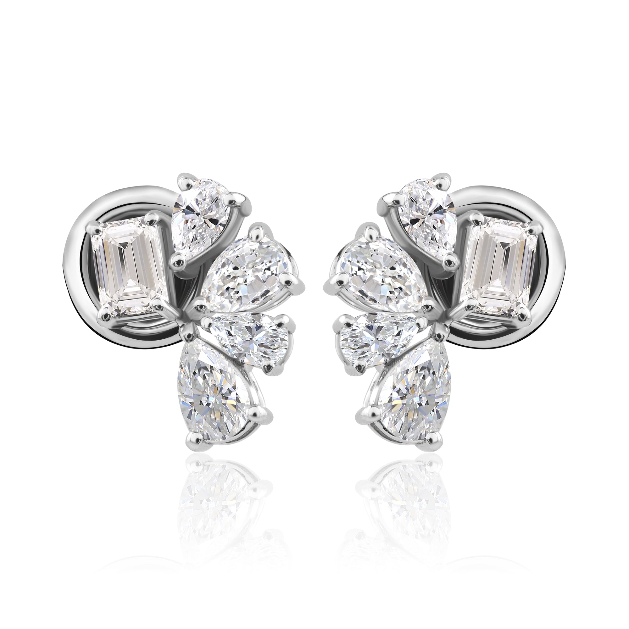 1.64 TCW Pear Emerald Lab Grown Multi Shape Diamond White Gold Stud Earring