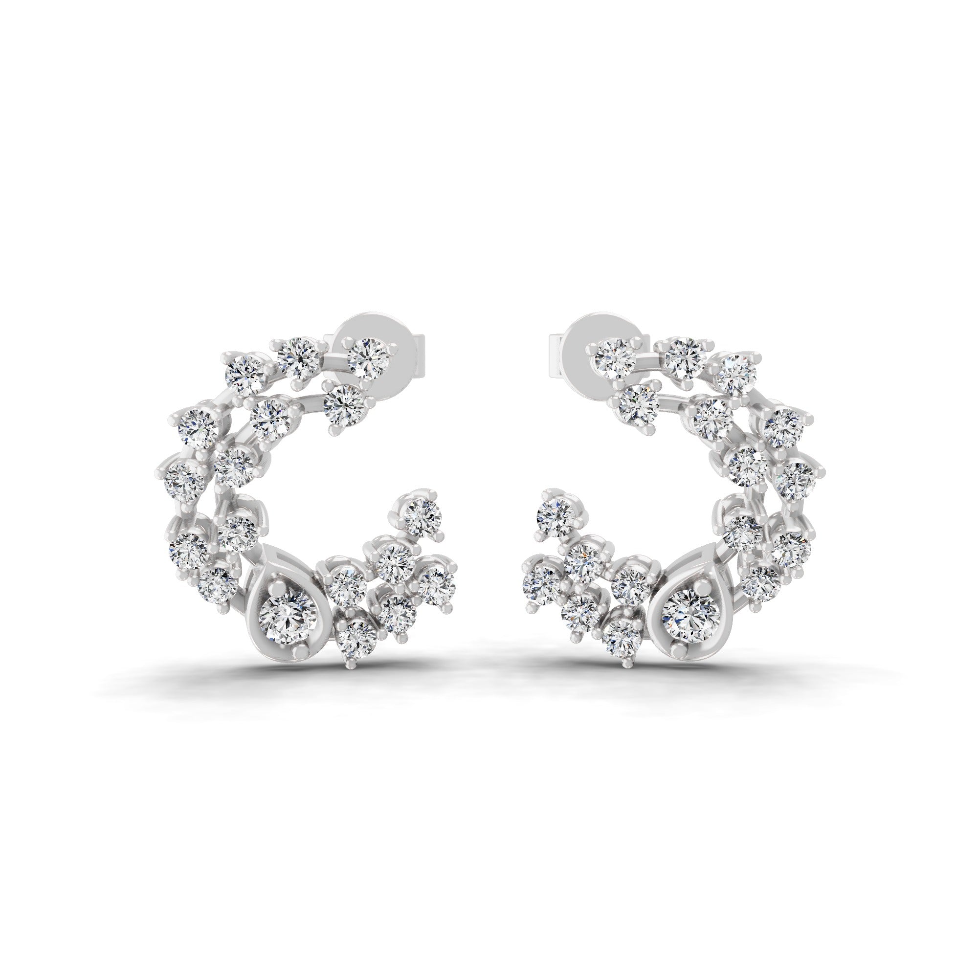 Floral Cluster Stud Earrings Lab Grown 2.07Ct Diamond 14K Fine Gold