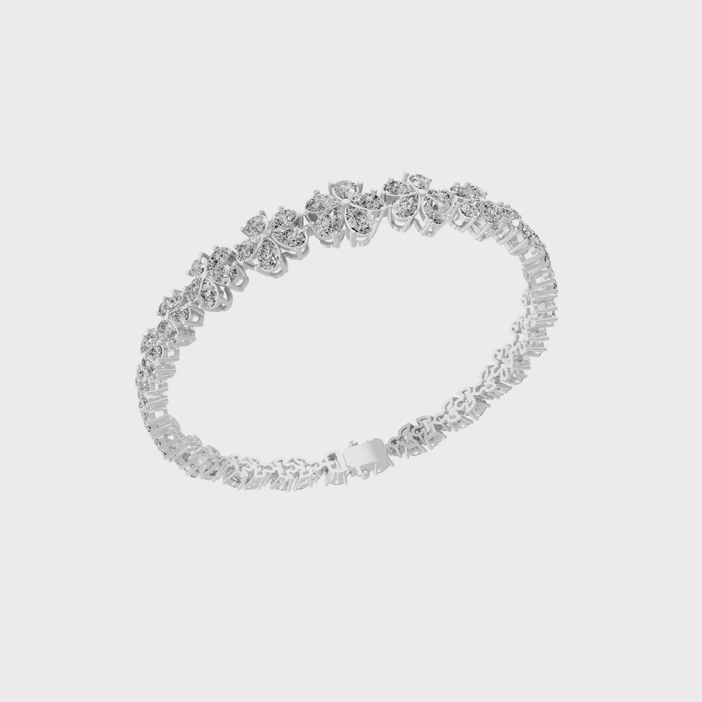 Glimmer Floret Lab Grown Diamond Tennis Bracelet 11.14Ct 14K Fine Gold