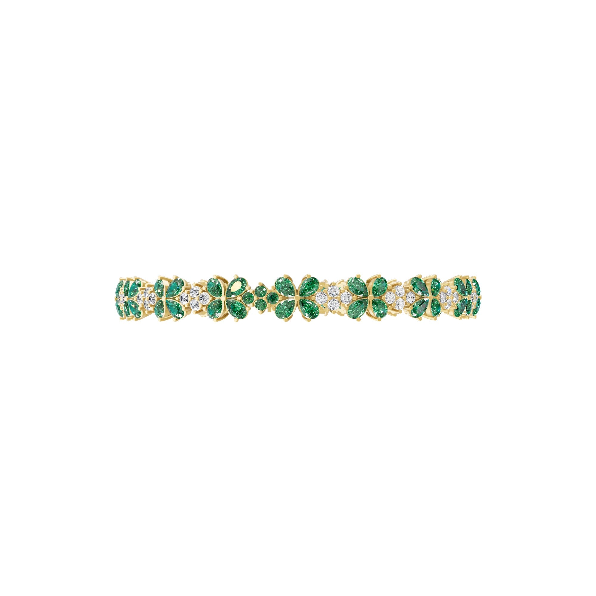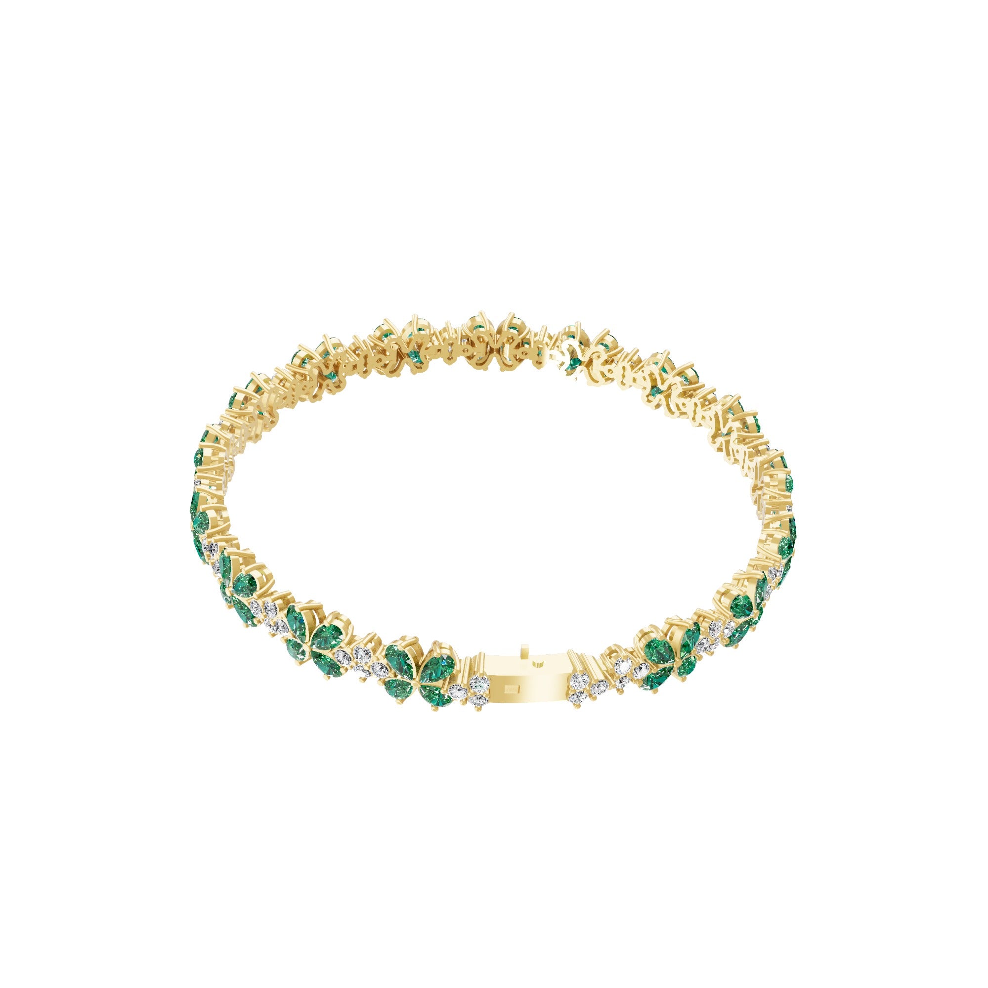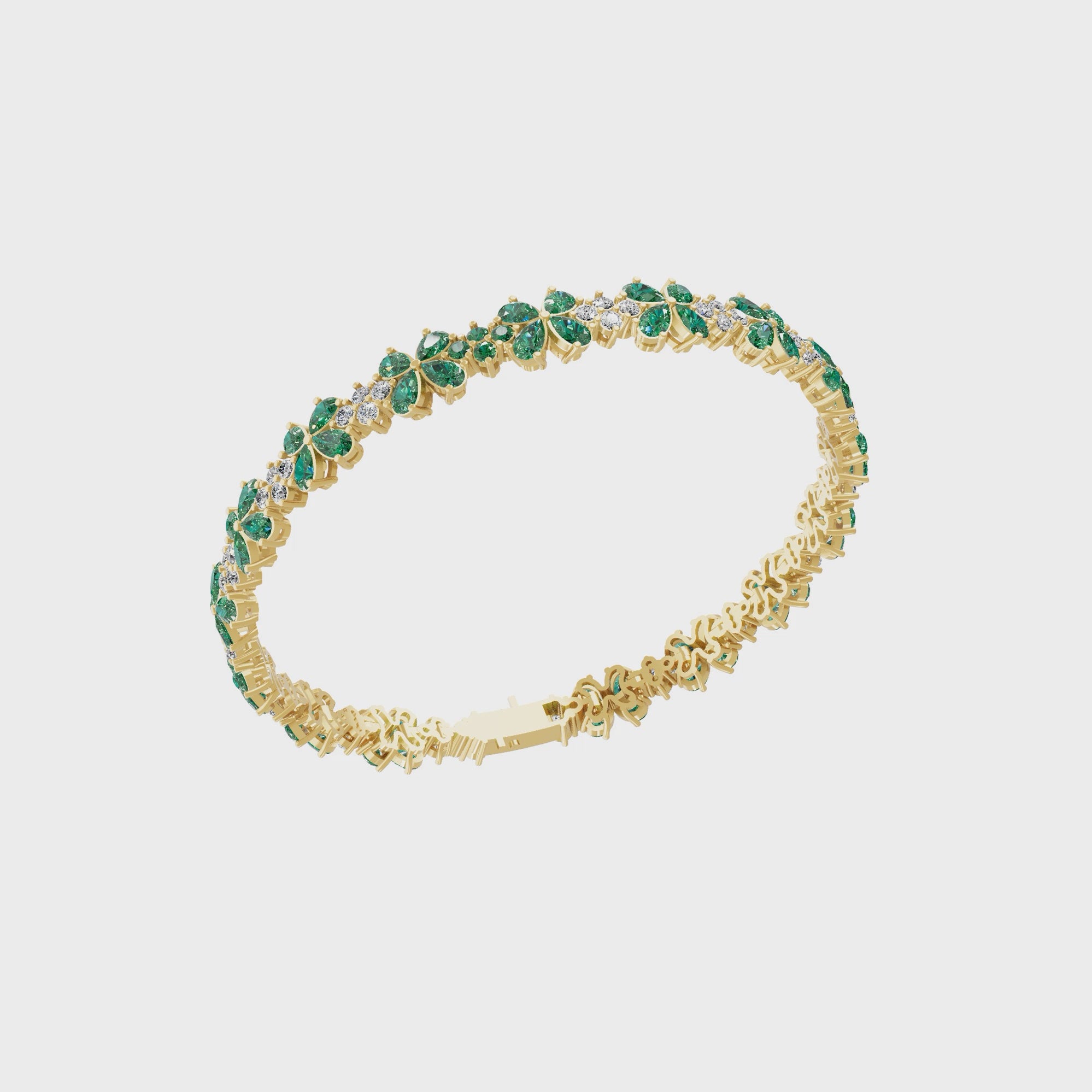 2.20TCW Round Pear Cut Emerald and Lab Grown Diamond Gold Tennis Bracelet