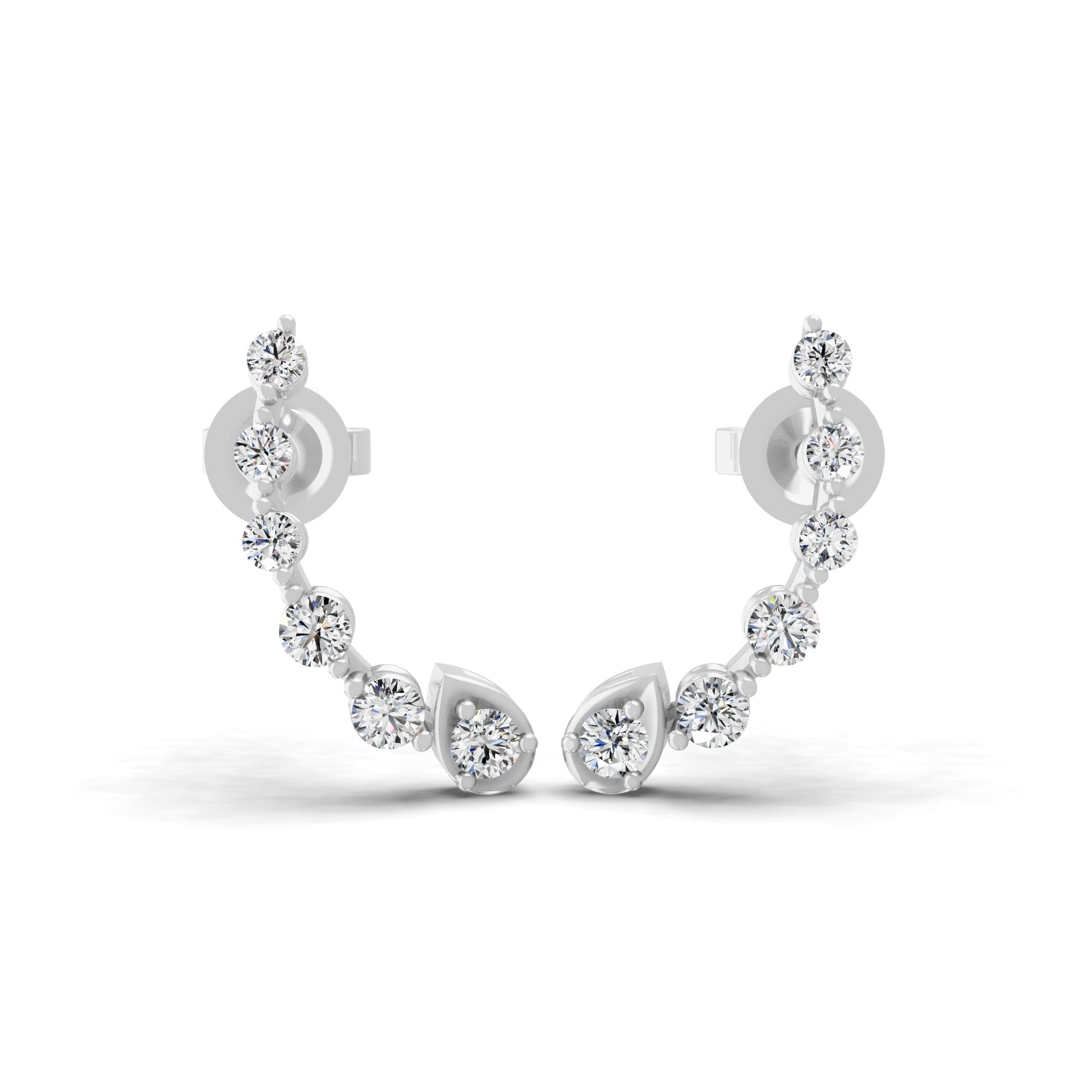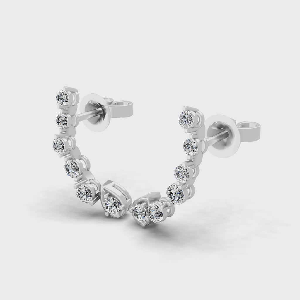 14K Fine Gold Lab Grown Diamond Curved Trail Ear Climber 0.60Ct