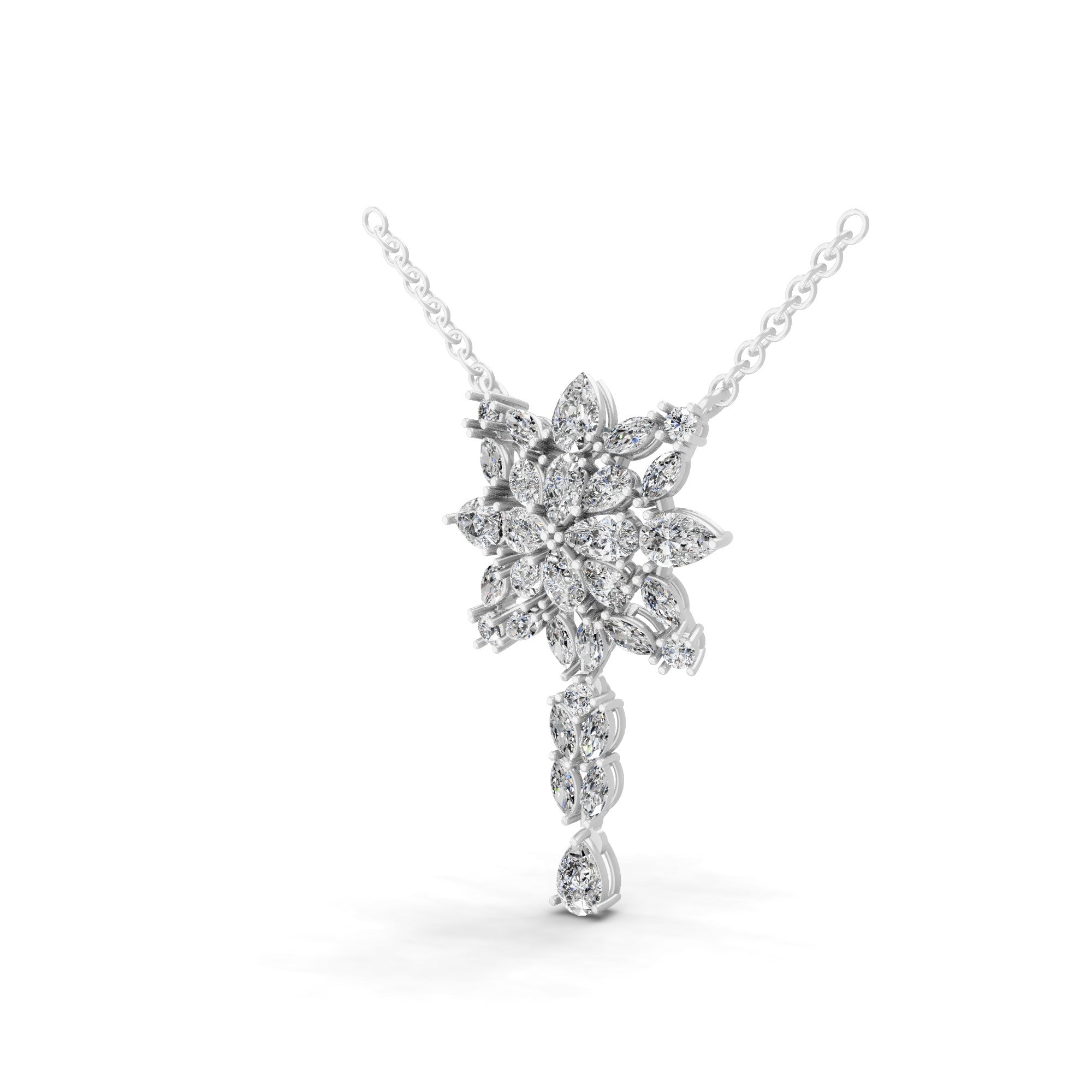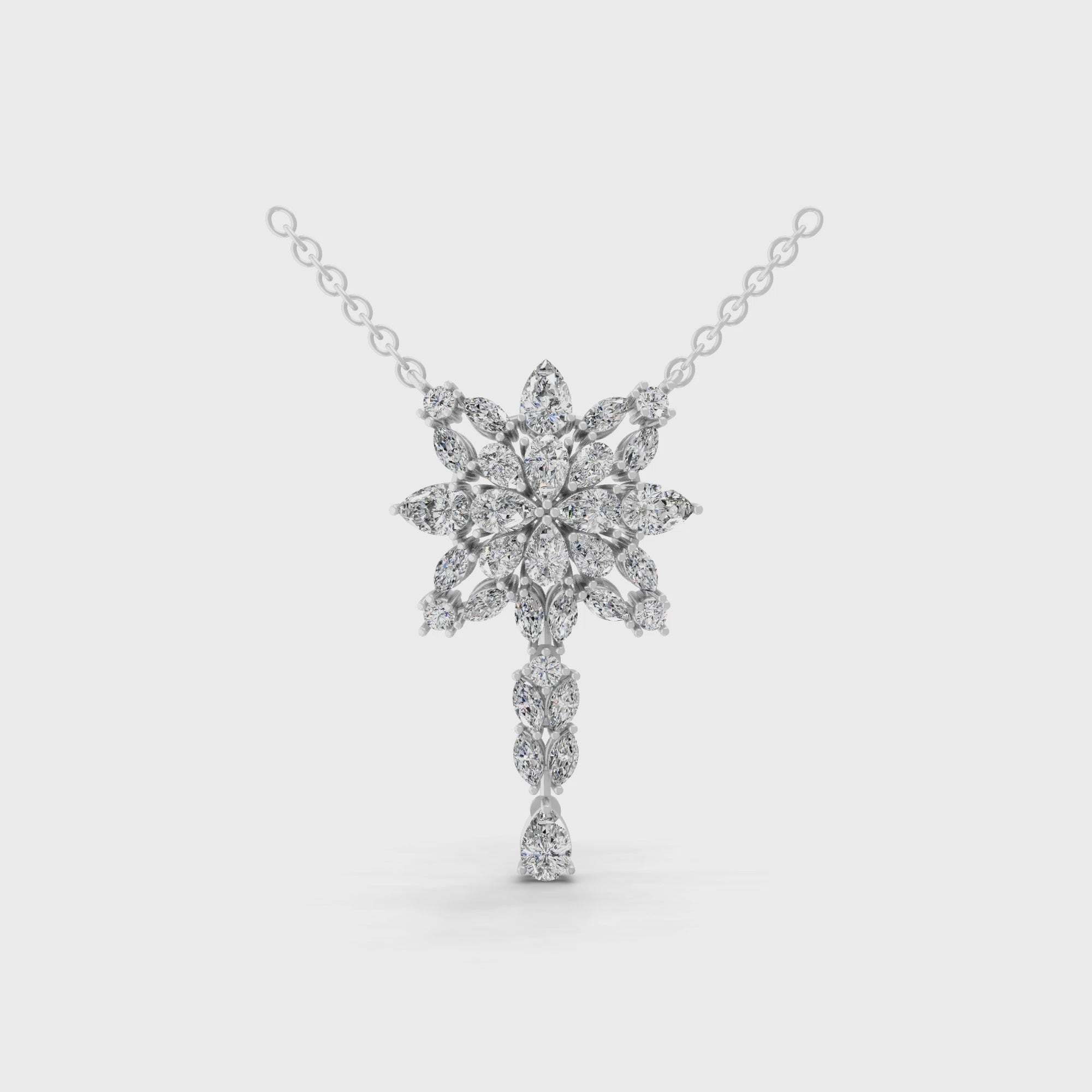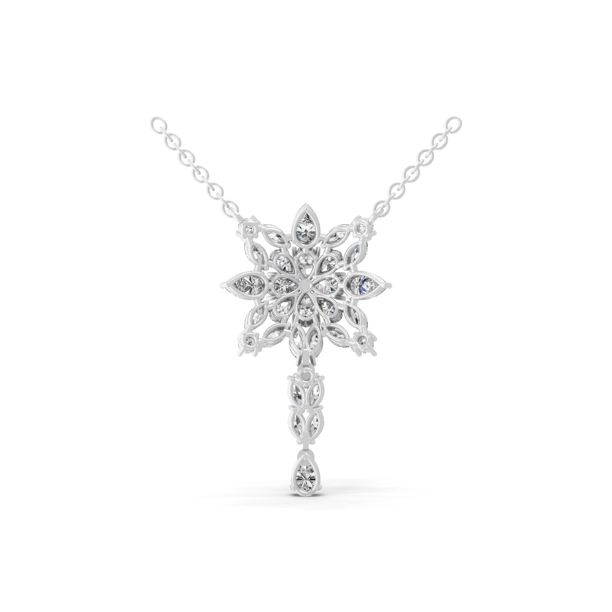 14K Fine Gold Multi Shape 3.95Ct Lab Grown Diamond Snowflake Pendant Necklace