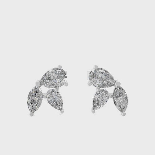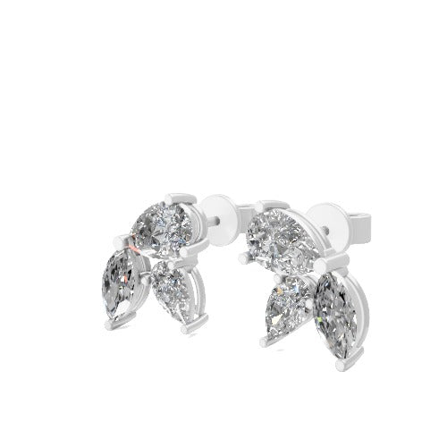 14K Fine Gold Pear Marquise Lab Grown Diamond 2.00Ct Tiny Stud Earrings