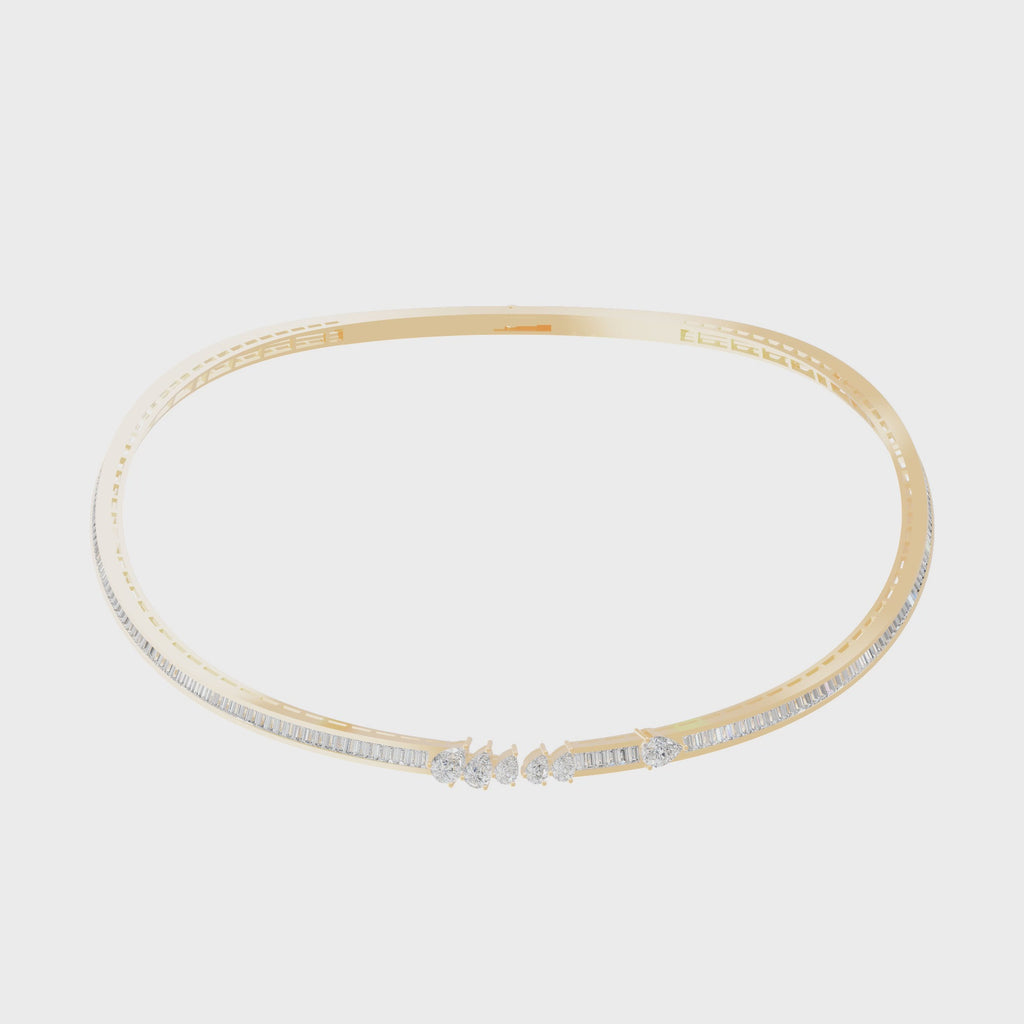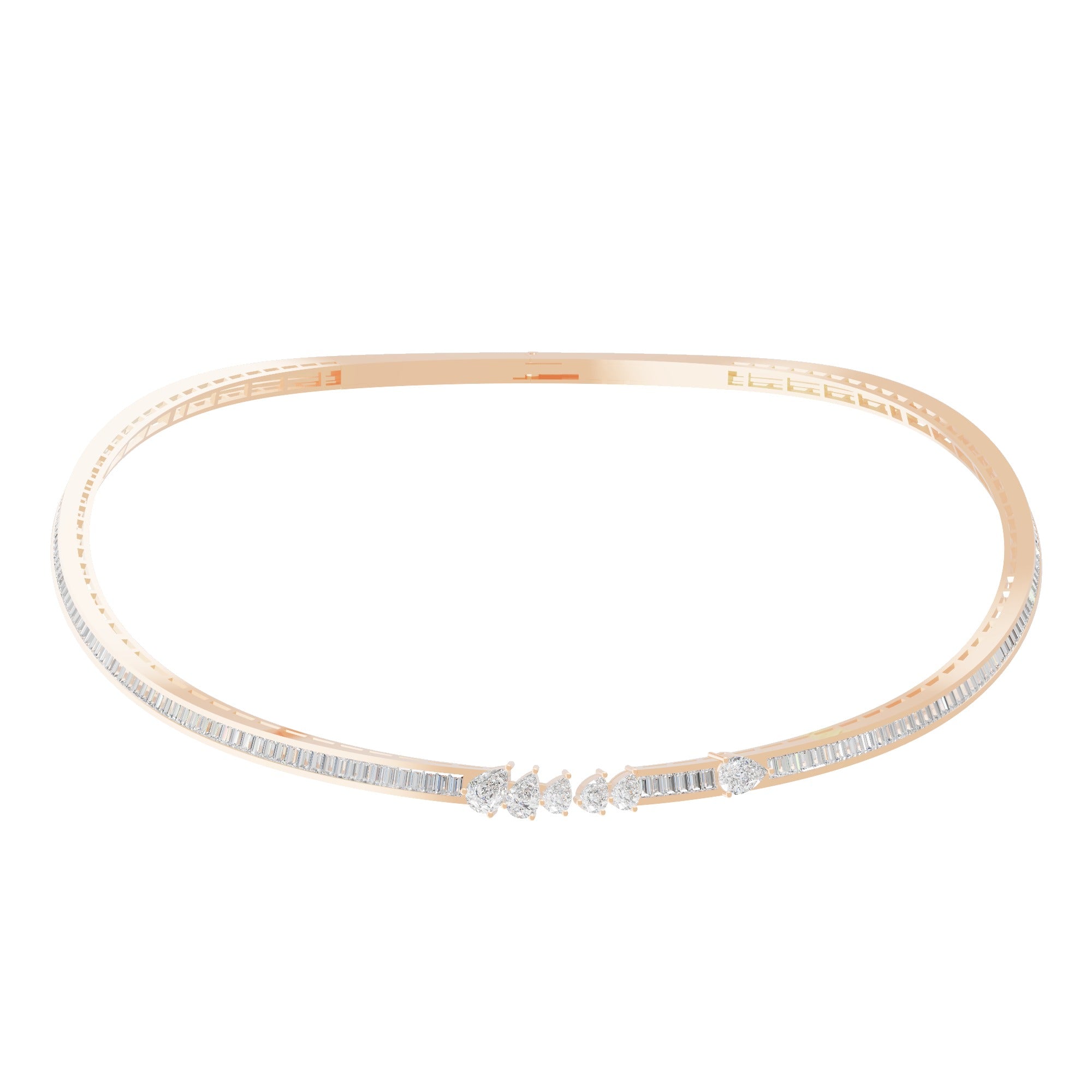 Baguette Cut Pear Lab Grown Diamond 4.77Ct Choker Necklace 14K Fine Gold