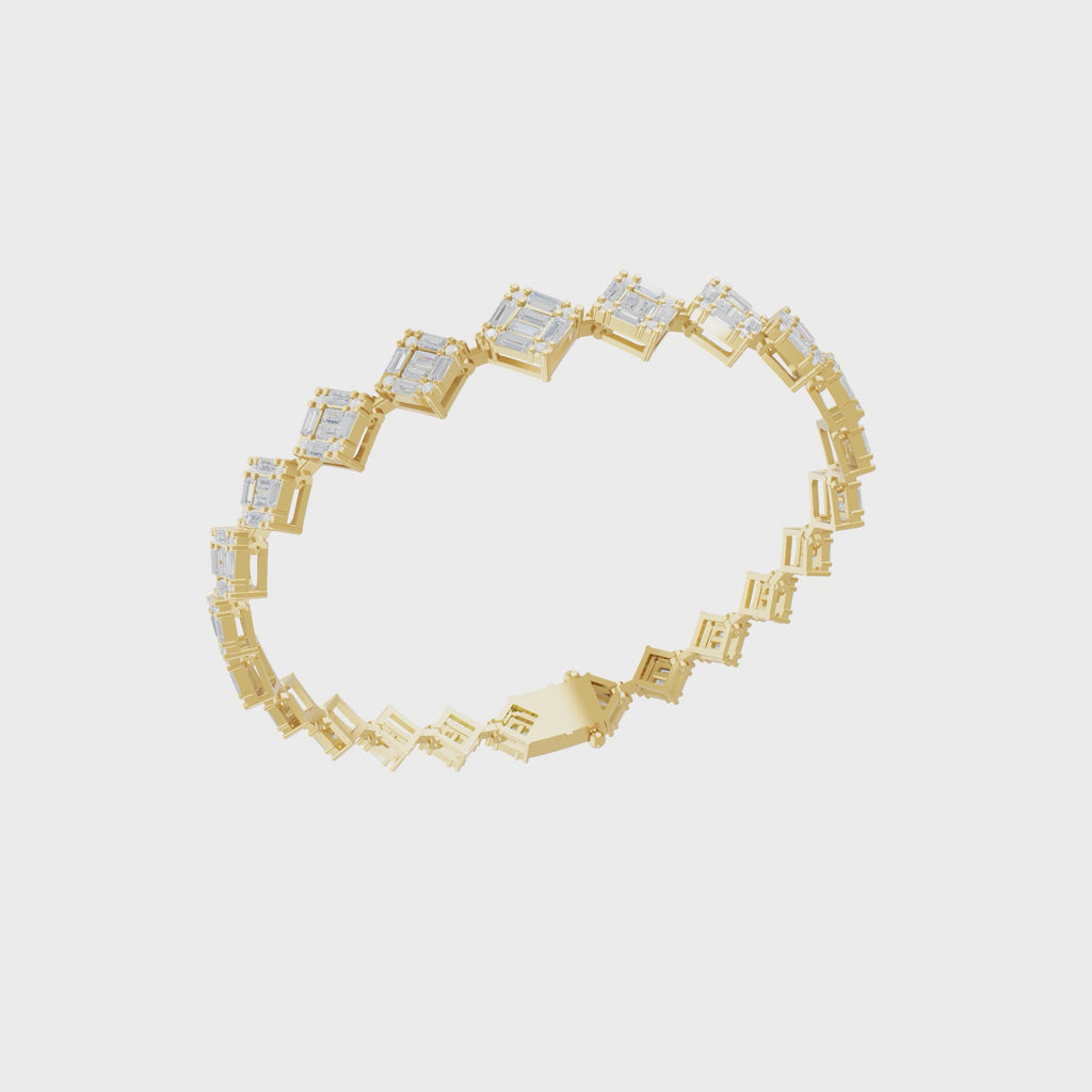 Lab Grown Diamond Baguette Round Cut Tennis Bracelet 14K Fine Gold 3.73Ct