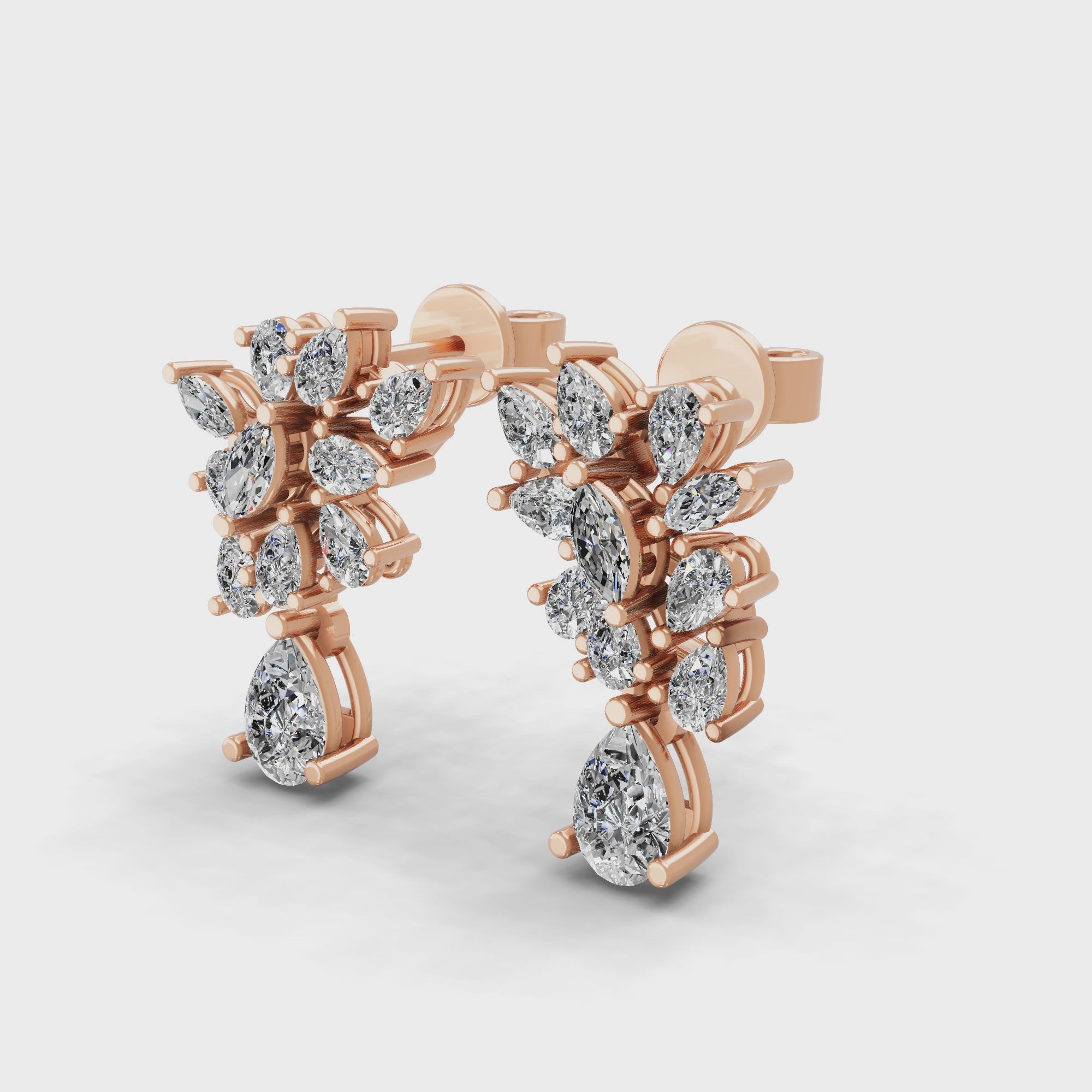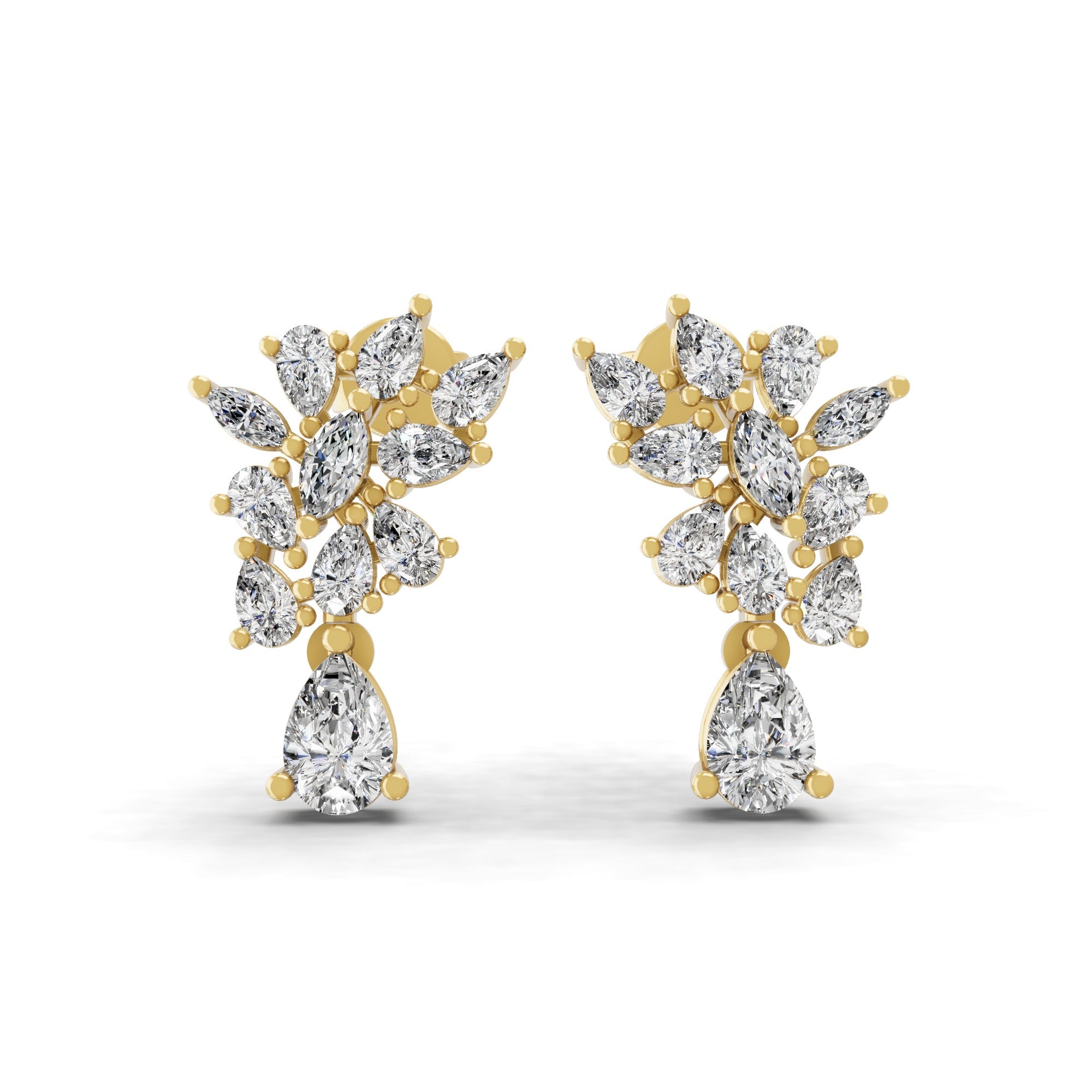 Radiant Fine Gold 1.69Ct Pear Marquise Cut Dangle Earrings Lab Grown Diamond